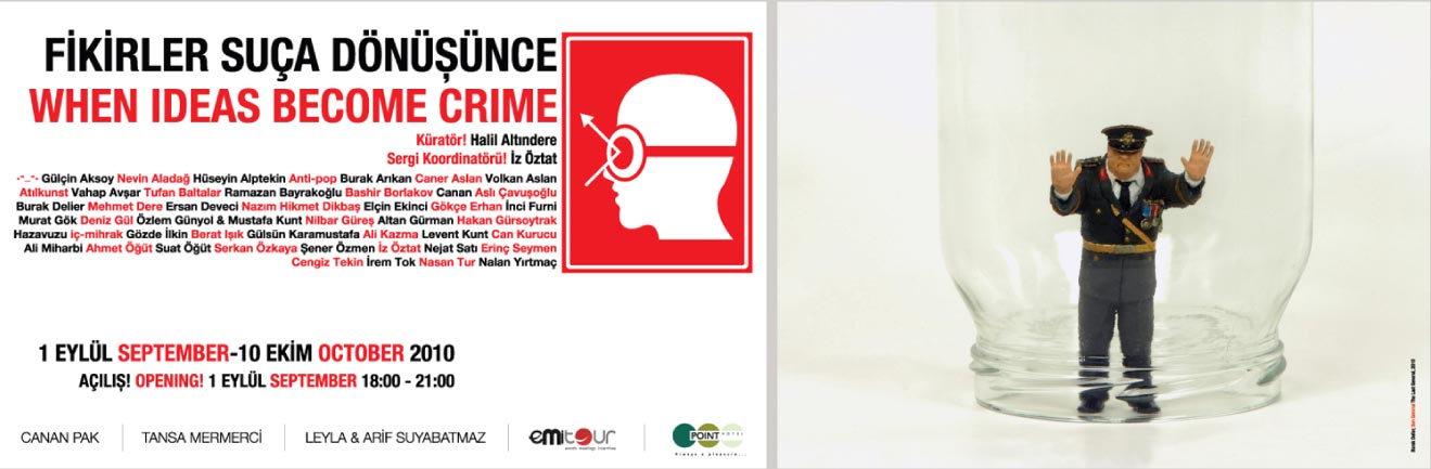 tütün deposu’nda 2010 yılının en iyi sergisi başladı: fikirler suça dönüşünce. daha önce de yazmıştım, halil altındere eylül başında jön türkleri depo’nun güneşli atmosferinde ağırlayacak diye. referandum otobüslerinin yarattığı gürültü kirliliği, her tarafta dev boyutlarıyla “demokrasi” çığırtkanlığı yapan evet afişleri ve çoğu paramparça hayırlar arasından tütün deposu’na ulaştık. tam ortasında yer aldığı kargaşadan mıdır, bu kargaşının içinde tamamen alakasız yükselmesinden midir, bahçesinde oturan şişman teyze, koşturan, evlerine girip çıkan esmer çocuklardan mıdır, içinde çalışan insanlardan mıdır, bilmiyorum, seviyorum burayı.