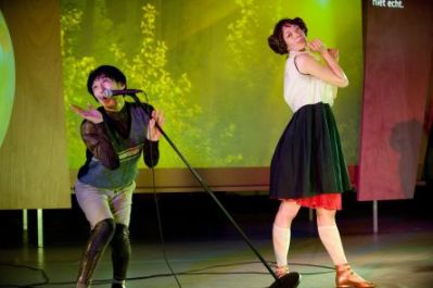 oyunun geneline gelirsek… sahnenin sağında setiyle oturmuş bir müzisyen dışında iki japon oyuncumuz vardı. ben ne yazık ki 2028 olimpiyatlarında fotoğraf çekmek için hollanda’ya gelmiş bir çift dışında pek bir şeye vakıf olamadım. sahnede öyle büyük bir karmaşa, gürültü, fazla oynama (over-acting) vardı ki konuyu takip etmeyi bıraktım bir süre sonra. zaten diyalogların da, rengarenk klipler eşliğinde söylenen şarkıların da çok derin bir anlamı olmadığı açıktı. evde yapacak daha iyi şeylerim vardı. keşke hiç çıkmasaymışım. dün akşamın biletiyle bu akşam crr’deki kir&glass performansına girebiliyormuşuz. gideceğimden şüpheliyim…